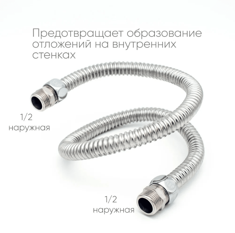 - Подводки имеют эстетичный внешний вид, что особенно актуально при монтаже водонагревателей и газовых колонок, так как они чаще всего находятся на виду. Подводка из нержавеющей стали не сгниёт, не лопнет и не приведёт к затоплению, обеспечивая безопасность и спокойствие.