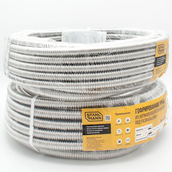 Труба Stahlmann 15А, бухта 50м, гофрированная из нержавеющей стали SS304, отожженная