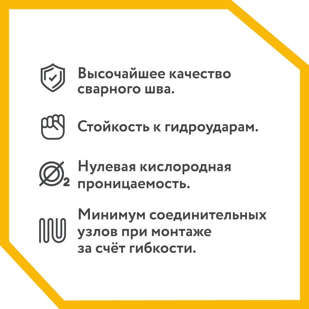- Высокая эффективность- коэффициент теплопроводности = 17 Вт/м*К, теплоотдача по сравнению с пластиковыми трубами на 20% выше