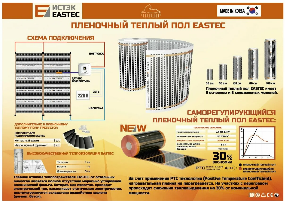 Инструкция к пленочному теплому полу Eastec 2ч.