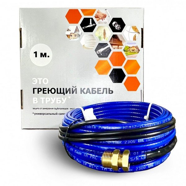 Греющий кабель для установки в трубу с сальниковым узлом - 1м