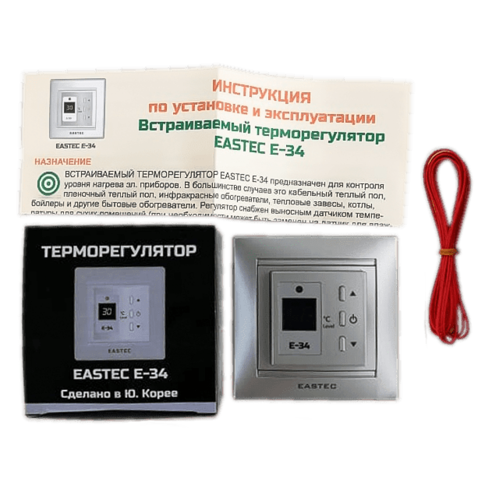 Встраиваемый терморегулятор EASTEC E-34 для теплого пола с выносным датчиком поверхности.