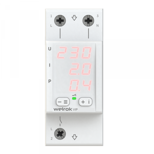 Многофункциональное реле напряжения с контролем тока Welrok VIP-40 red на DIN-рейку 40А 8,8кВт