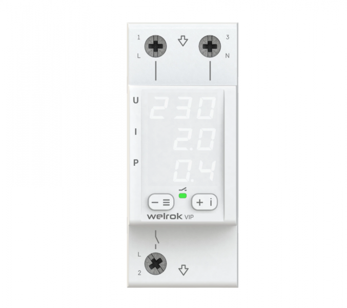 Многофункциональное реле Welrok VIP защищает оборудование от скачков и провалов напряжения, последствий обрыва нулевого провода и превышения тока или полной мощности. Реле отключает нагрузку, если напряжение, ток или мощность выходит за установленные пределы и автоматически включает нагрузку, когда значение параметра вернется в норму.